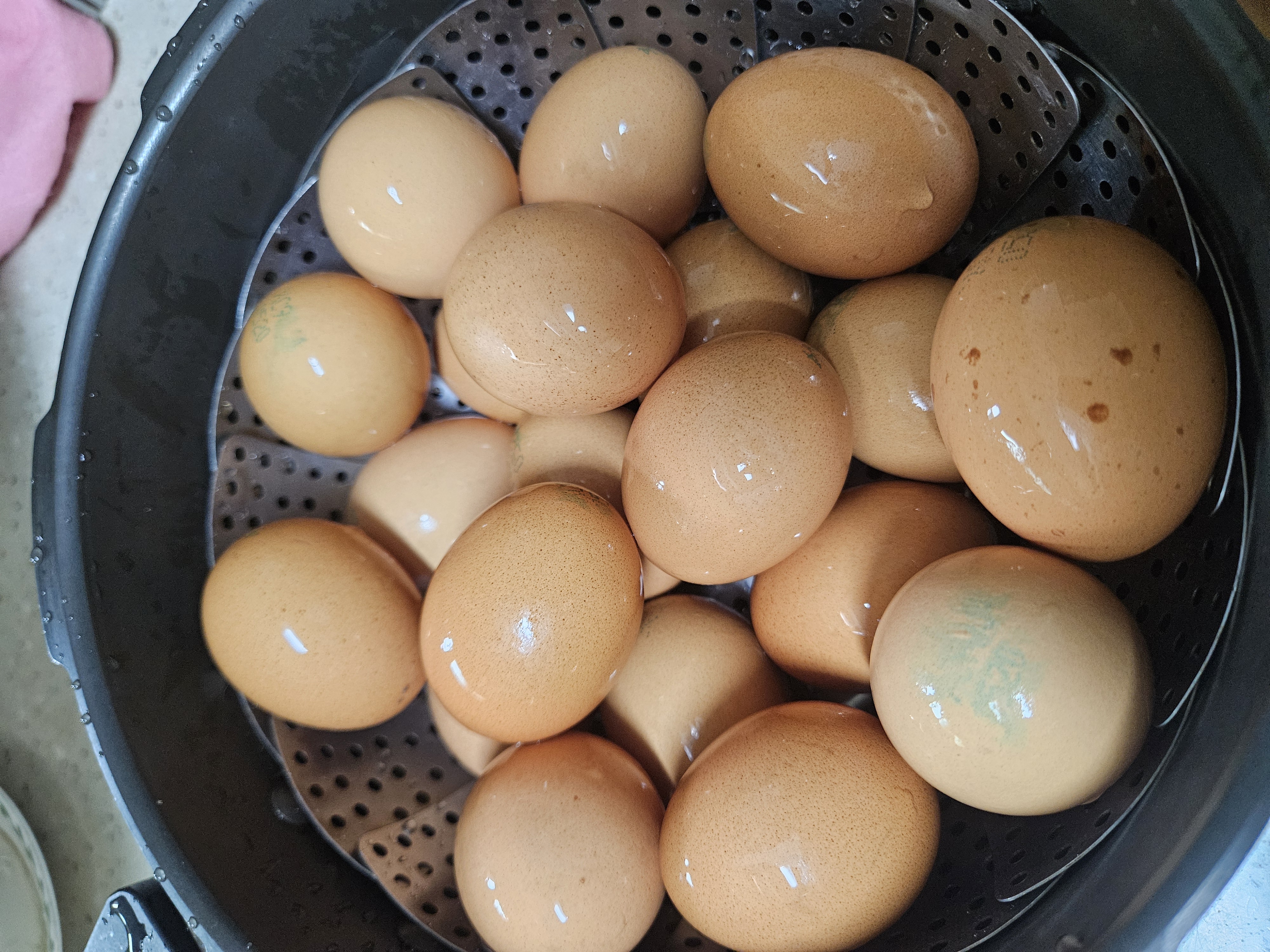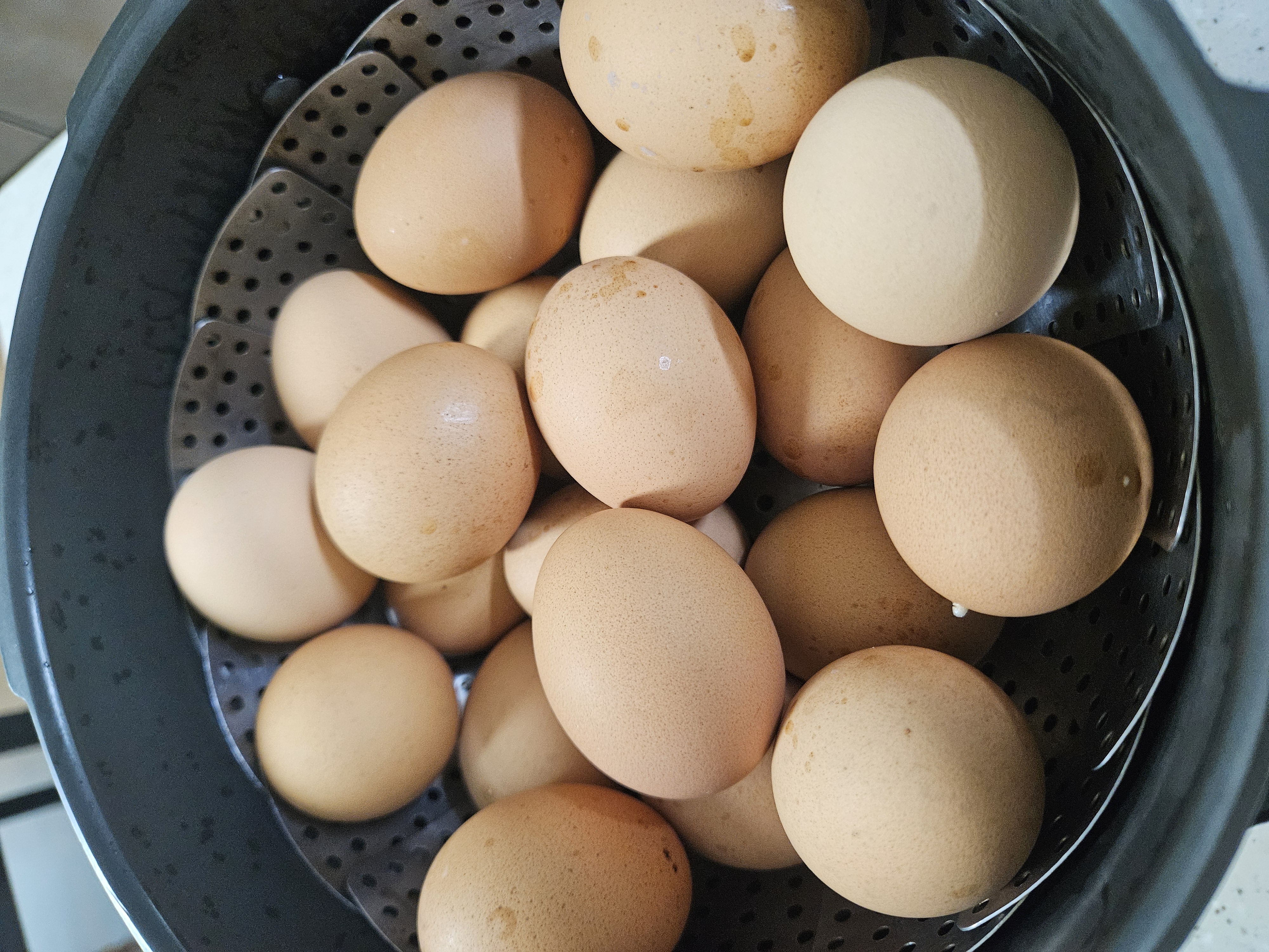 찜기 위에 계란들을 조심스럽게 올려줍니다. 포개어도 상관없지만, 너무 많이 겹치지 않게 하는 게 좋아요.