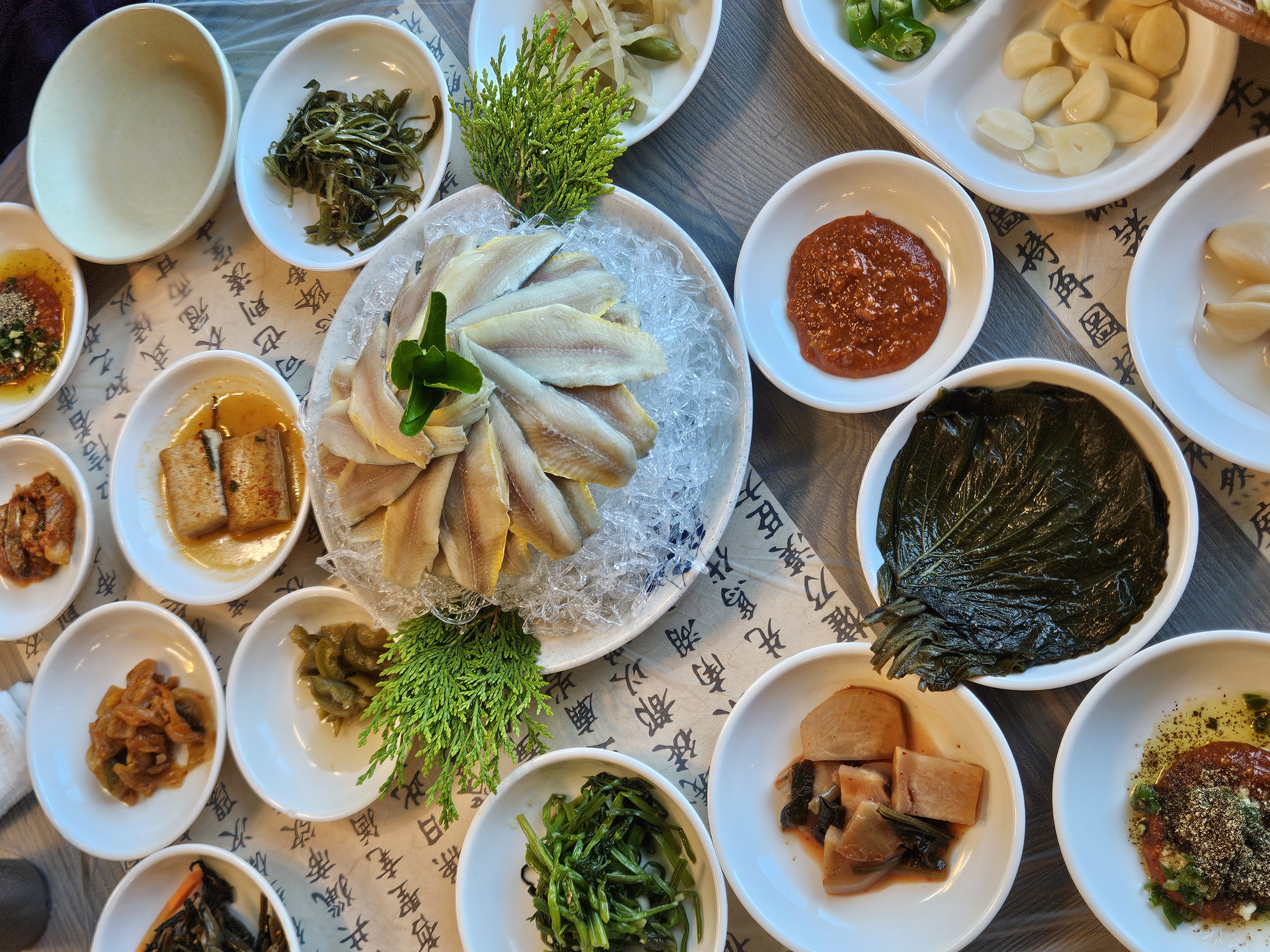 얇고 곱게 썰린 밴댕이가 천사채 위에 올려져 시각부터 시원한 느낌을 주고, 고소한 기름기와 담백함이 어우러져 입안 가득 바다향이 퍼졌어요. 상추에 마늘, 고추, 된장 곁들여 한 쌈 싸먹으면 그야말로 꿀맛!